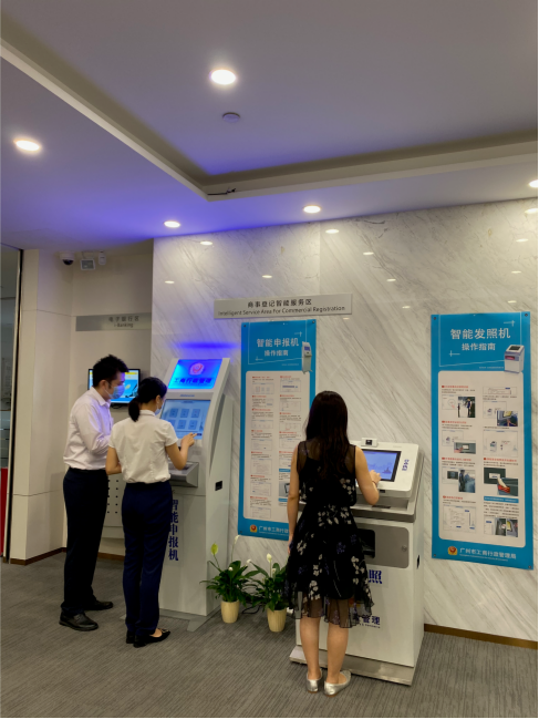 近日,创兴银行广东自贸试验区南沙支行全程电子化商事登记智能服务区正式对外提供服务,成为南沙区内首家在营业场所设置商事登记自助申报机和自助打照机的银行网点。该项服务可以为有意愿在南沙区投资注册公司的客户提供自助申报和营业执照自助打印服务,方便客户采用全程电子化方式申请和领取营业执照。