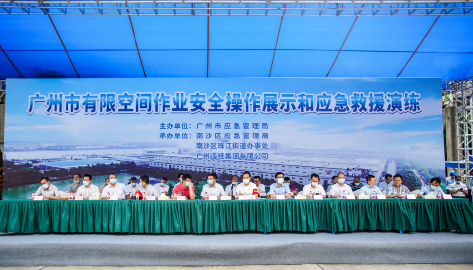 在公司领导的高度重视下,通过新产品分厂、办公室、人力资源部、采购部、生产部、物流管理部、园区发展部等部门的积极配合,广州市有限空间作业安全操作展示和应急救援演练于8月26日在公司成功举办。市应急管理局党委书记、局长黄彪、南沙区常务副区长谢明、开元ky888集团副总经理谭思马和公司党委书记、董事长周耘出席了本次活动,各区应急管理局和珠江街主要负责人、市有限空间作业重点企业代表、开元ky888集团安监部和各板块安全责任人及公司AB类部门共160余人现场观摩演练。